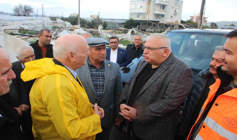 Mavikent Mahallesi’nde hortumdan zarar gören üreticileri ziyaret eden Genel Başkan Şemsi Bayraktar, iklim değişikliği ve mevsim kaymalarının tarım sektöründe ciddi kayıplara yol açtığını belirterek, Kumluca, Kemer, Aksu, Serik ve Kepez ilçelerinde 50 mahallede bin 437 üreticinin ve 5 bin 34 dekar meyve, sebze ve buğday alanının zarar gördüğünü söyledi.